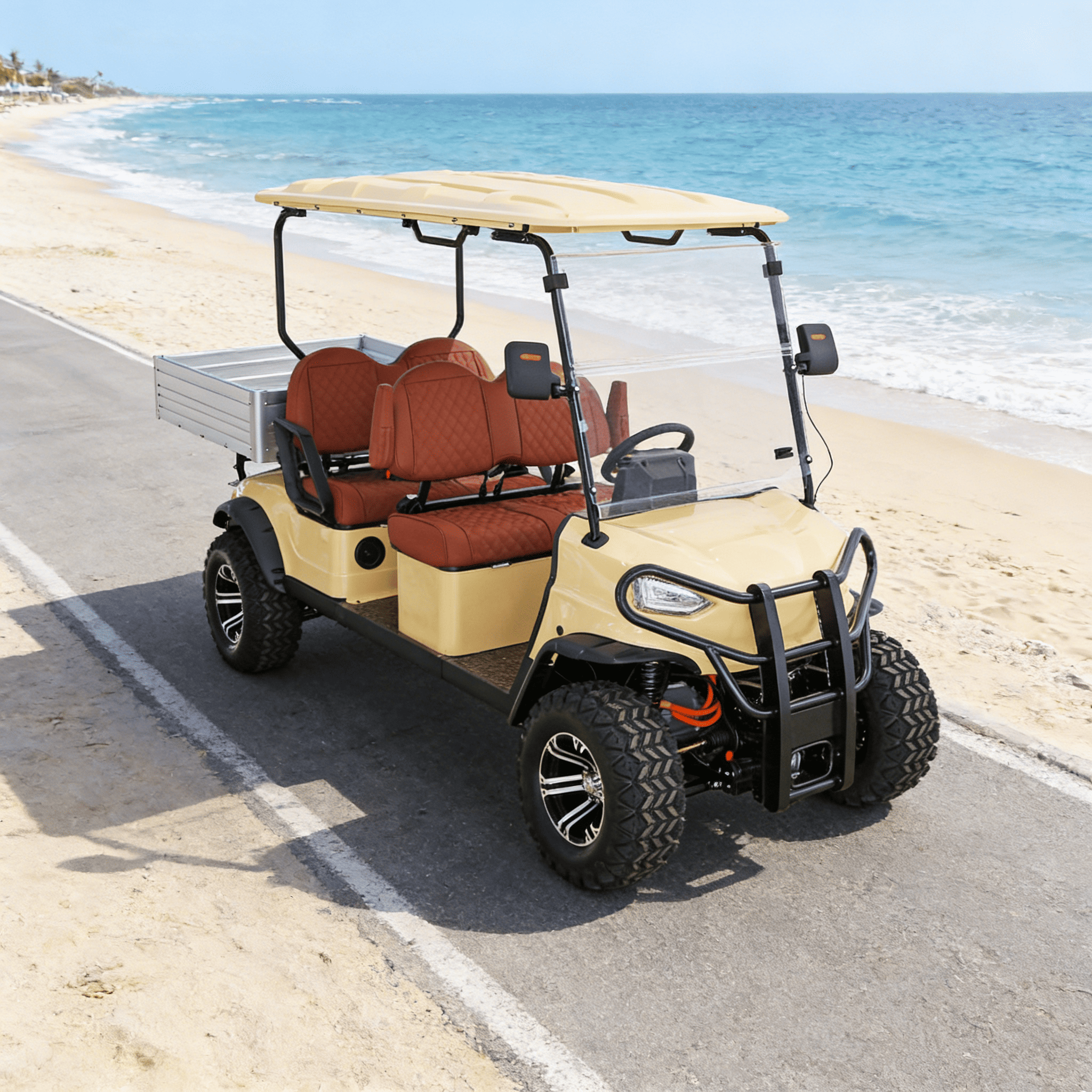 Встречайте YATIAN GQ04Z, универсальный 4-местный электромобиль, созданный для того, чтобы превзойти ожидания на поле для гольфа, охотничьих угодьях, ферме, ранчо, курорте или в частной собственности. Эта модель, оснащенная двухмоторной системой полного привода, блокировкой переднего дифференциала, литиевым двигателем дальнего действия и прочной, но изысканной конструкцией, сочетает в себе комфорт гольф-кара премиум-класса с внедорожными возможностями полноразмерного охотничьего UTV.